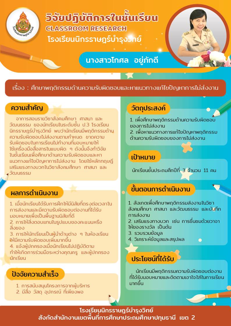 ศึกษาพฤติกรรมด้านความรับผิดชอบและหาแนวทางแก้ไขปัญหาการไม่ส่งงาน
