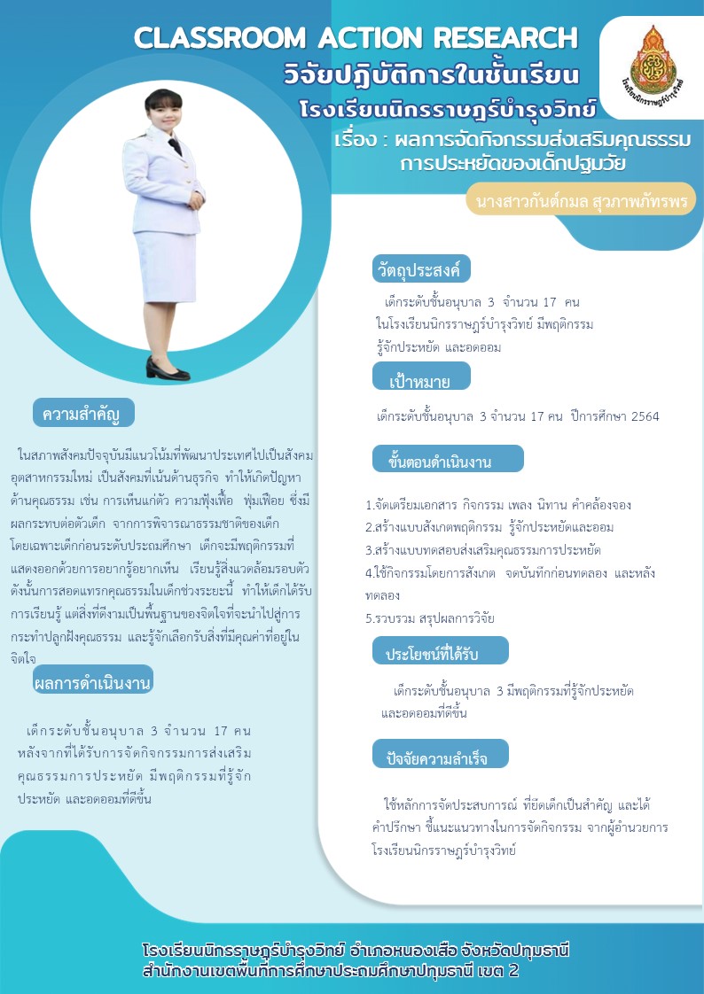 ผลการจัดกิจกรรมส่งเสริมคุณธรรมการประหยัดของเด็กปฐมวัย