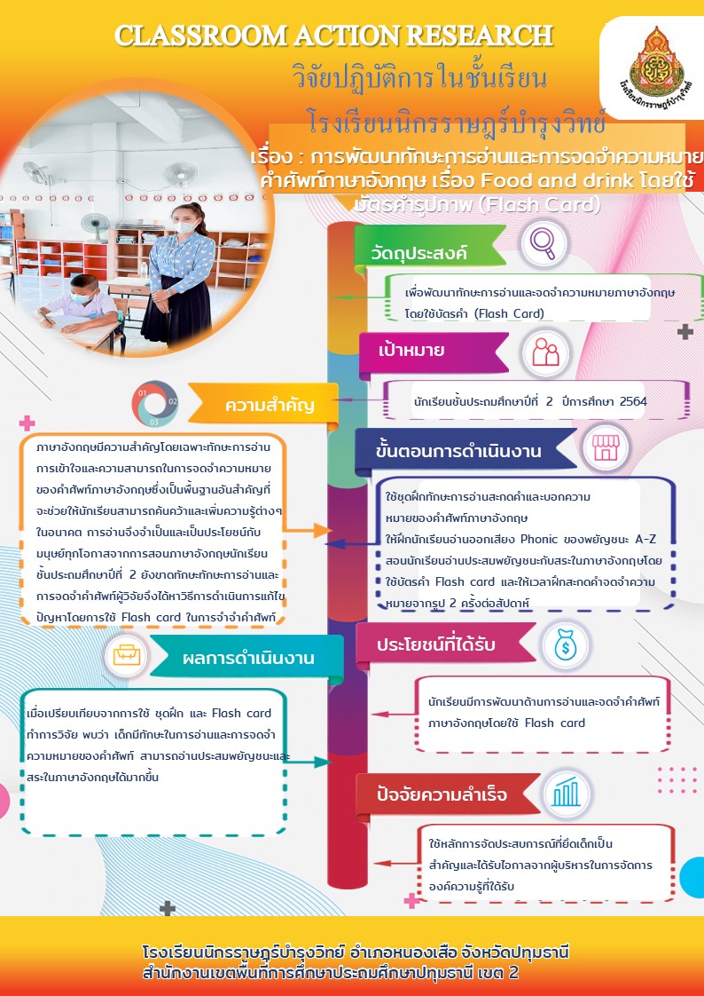 การพัฒนาการอ่านและการจดจำความหมายคำศัพท์ภาษาอังกฤษ เรื่อง Food and drink โดยใช้บัตรคำรูปภาพ